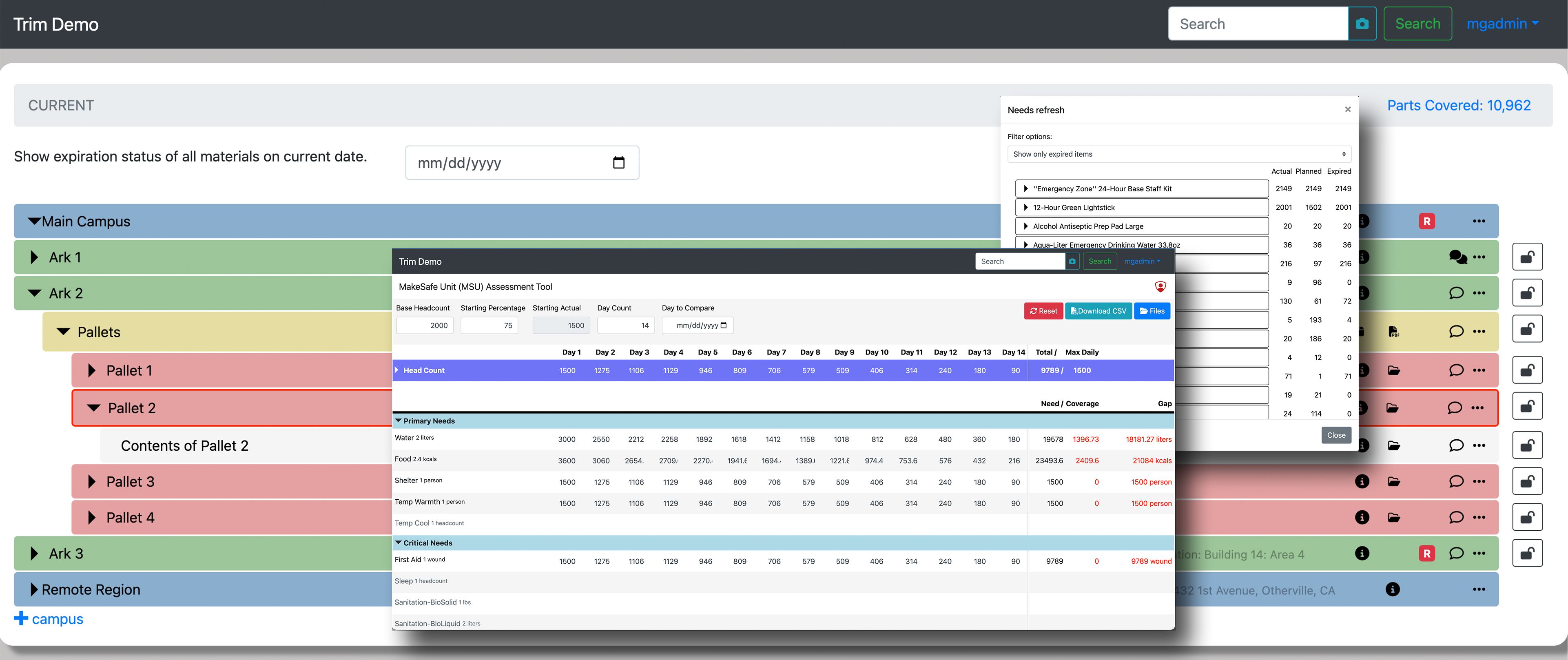 Cache contents laid out for easy deployment, full expiration tracking, straightforward inventory checking using mobile tools,
